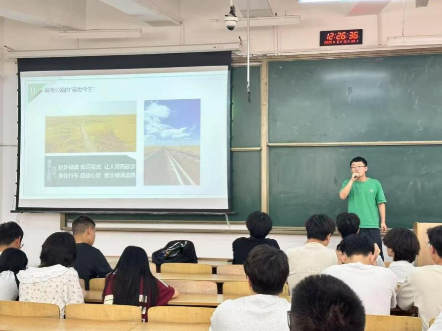 会上,2024年四支优秀暑期社会实践团队代表依次分享了他们的实践经验和成果。沙漠织绿实践团的李者同学讲述了团队在内蒙古鄂尔多斯沙漠边缘开展生态研究的经历。他们通过科学探索,为荒漠化防治提供了新思路,展现了青年学子在生态保护中的使命与担当。汉江生态建设调研实践团的段凯哲同学分享了团队在陕西安康汉江流域的调研成果。他们通过水质监测和生态评估,为“母亲河”的保护贡献了专业力量,彰显了青年在生态文明建设中的重要作用。“光影拾遗,探寻洋县皮影戏”实践团的车龙吉同学介绍了团队在汉中洋县挖掘和传播皮影文化的实践历程。他们通过举办展览和宣讲活动,让非遗文化焕发新生,体现了青年在文化传承中的创新活力。“乡村振兴·青春笃行”实践团的赵志聪同学讲述了团队在陕西紫阳县助力乡村振兴的实践故事。他们从产业调研到公益课堂,用实际行动为乡村发展注入青春能量,展现了青年在乡村振兴中的实干精神。