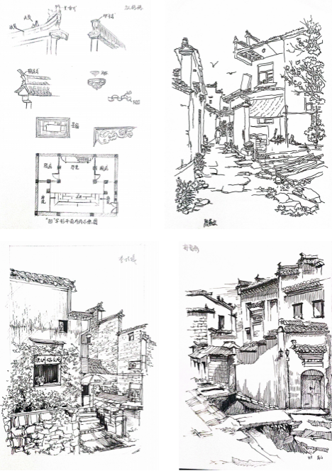 经过一天的工作,同学们完成摄影作品、建筑测绘图纸、速写等时间任务。这些成果为后续的专题研究积累了丰富素材。明日,团队将前往宏村和卢村,继续深入考察徽州传统村落。