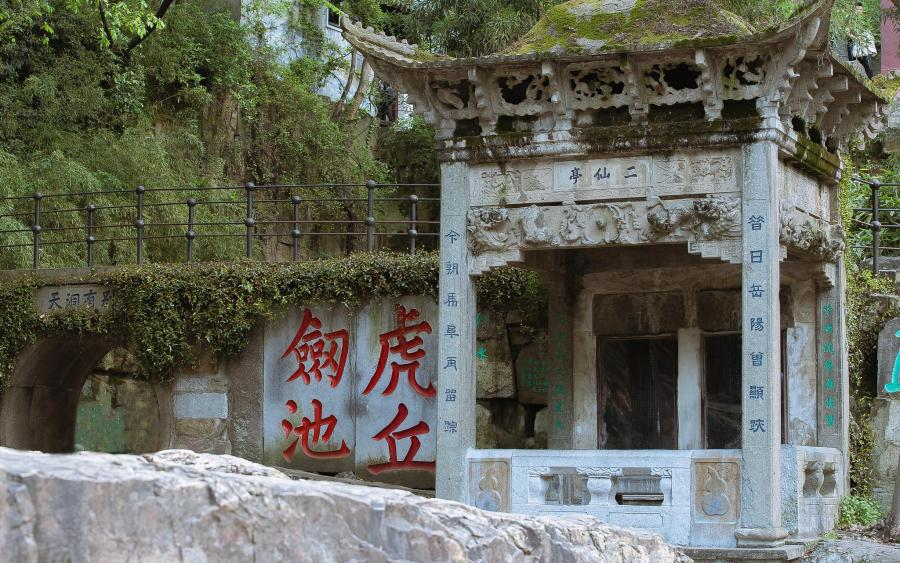 虎丘踏古叩剑魂,斜塔云岩证沧桑