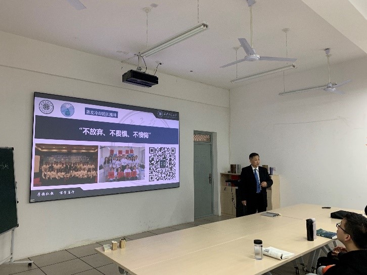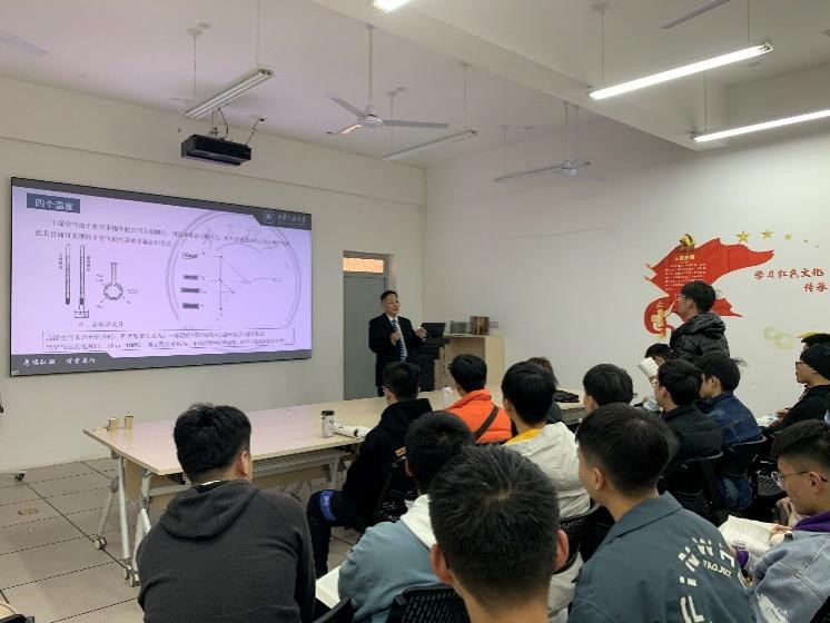 课堂伊始,屈元老师向同学们介绍了黄翔教授的简历和蒸发冷却团队22年来所取得的成就,同学们对黄翔教授的到来表示热烈的欢迎。