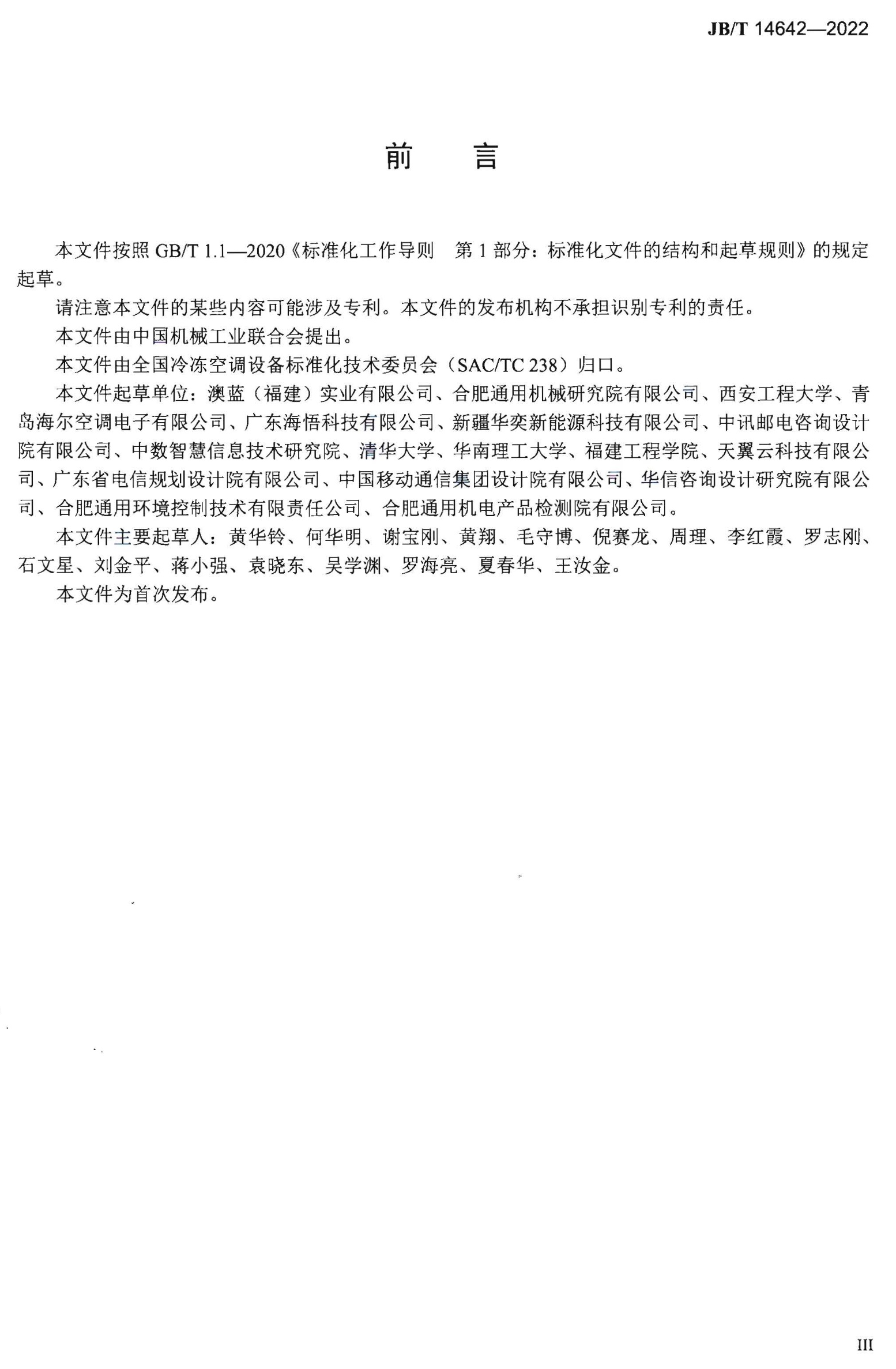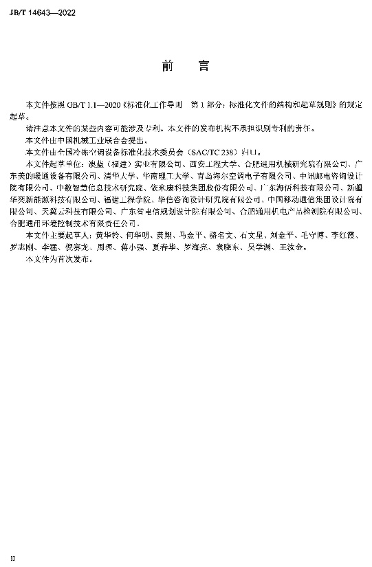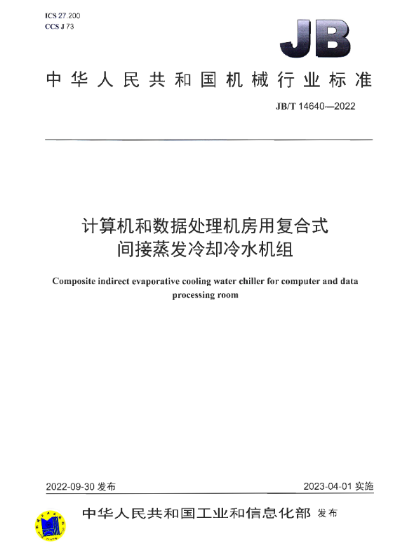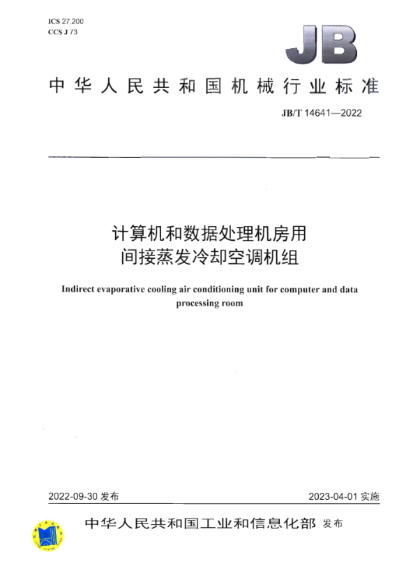 《计算机和数据处理机房用间接蒸发冷却空调机组》(JB/T 14641-2022)规定了计算机和数据处理机房用间接蒸发冷却空调机组为技术要求、试验方法、检验规则以及标志、包装、运输和贮存。该标准适用于计算机、数据处理机和通信设备等机房用的间接蒸发冷却空调机组的制造。