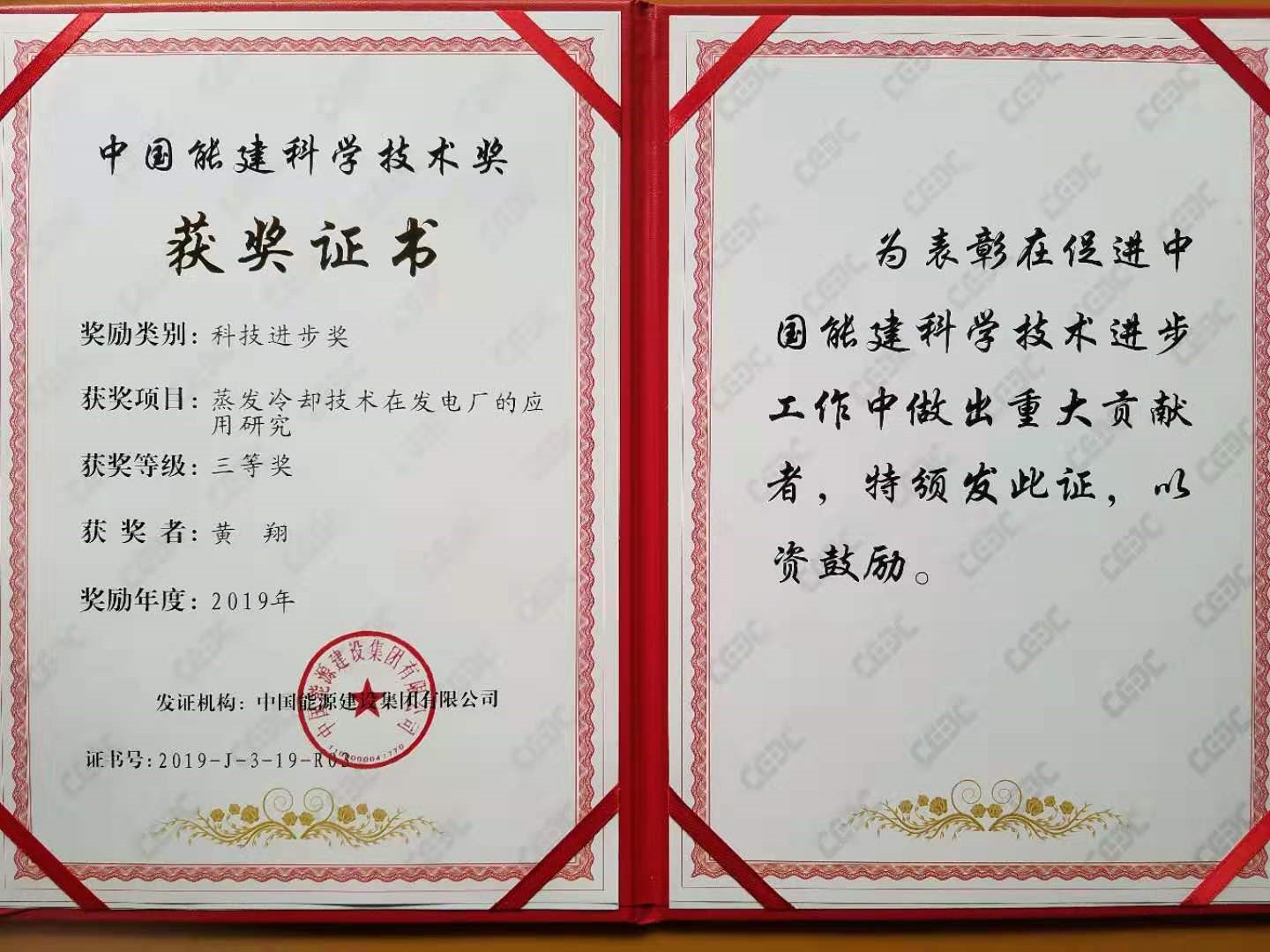“中国能建科学技术奖”奖项由中国能源建设集团审核并备案,旨在调动能源建设领域工作者的积极性和创造性,奖励能源建设应用中的科技创新成果和科技创新产品,为提高科技创新以及国家节能减排事业做出的重要贡献。本次评选共99个项目入围,经形式审查、专家网评、专业组初评、科技委终评等多个环节严格筛选,最终确定了48个获奖项目,含3项技术发明奖项目、45个科技进步奖项目。获奖项目中,由中国电力规划设计总院有限公司、beat365vip官网登录入口、中国电力工程顾问集团华北电力设计院有限公司、中国电力工程顾问集团西北电力设计院有限公司、中国电力工程顾问集团华东电力设计院有限公司等5个单位联合申报的“蒸发冷却技术在发电厂的应用研究”项目荣获中国能建科学技术三等奖。