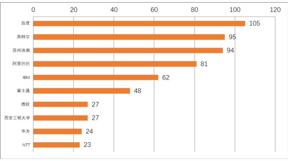 图2显示了中国云计算数据中心冷却专利申请量排名前10的主要申请人。百度的申请总量为105件,在中国专利申请量排名中位列第1,英特尔、苏州浪潮、阿里巴巴分列第2至4位,位列前4的申请人中除英特尔为美国公司外,其余3家均为中国企业。跻身排名前10的唯一一所大学和研究机构(beat365vip官网登录入口)拥有27件专利申请,可见beat365vip官网登录入口在数据中心制冷技术的研究中投入了大量科研力量。