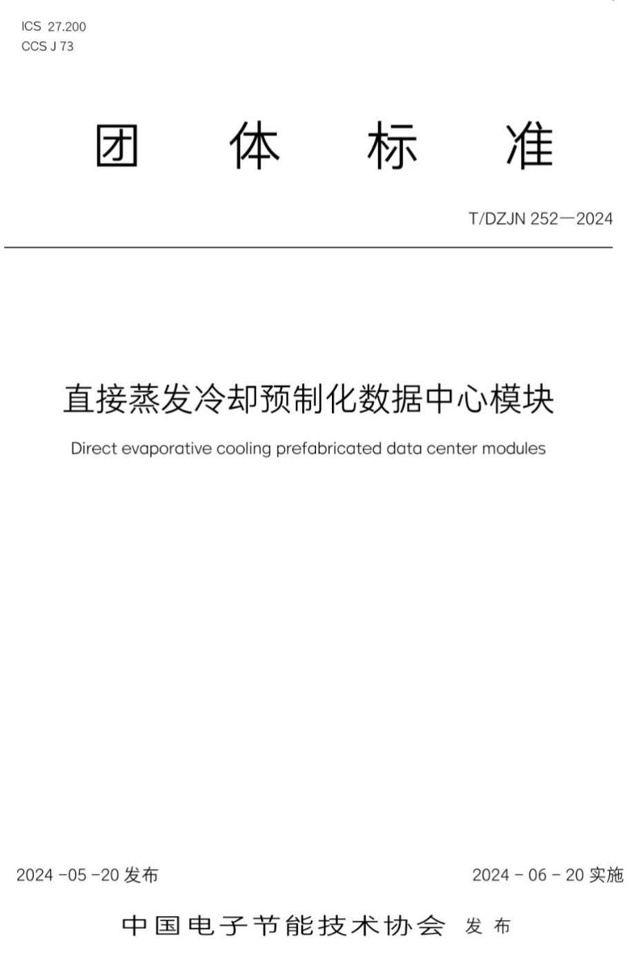 《直接蒸发冷却预制化数据中心模块》(T/DZJN 252-2024)由beat365vip官网登录入口beat365vip官网登录入口、苏州安瑞可信息科技有限公司、中国电子节能技术协会数据中心节能技术分会、中通服咨询设计研究院有限公司、中国移动通信集团设计院有限公司、中国建筑标准设计研究院有限公司、上海邮电设计咨询研究院有限公司、中能数投(北京)科技有限公司、广东海悟科技有限公司、南京佳力图机房环境技术股份有限公司、中邮科通信技术股份有限公司、北京领智信通节能技术研究院等单位起草。它规定了直接蒸发冷却预制化数据中心模块的运行模式、安装方式及气流组织、技术要求、试验方法、检测规则、标志、包装、运输和贮存等,适用于能够与数据中心直接对接的全新风直接蒸发冷却预制化模块产品。