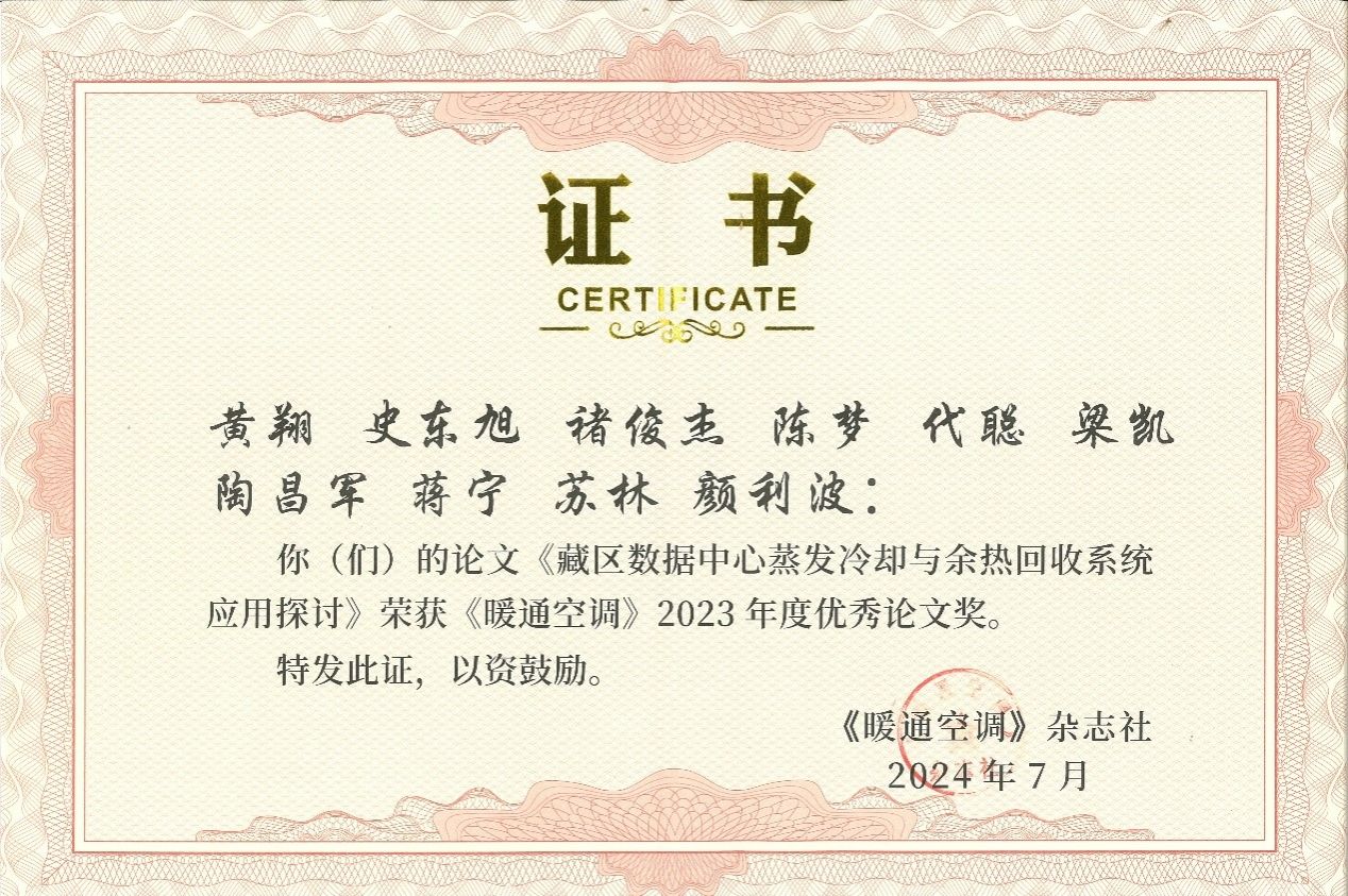 论坛开幕式上还进行了《暖通空调》2023年度优秀论文颁奖仪式,黄翔教授蒸发冷却团队撰写的论文《藏区数据中心蒸发冷却与余热回收系统应用探讨》荣获《暖通空调》2023年度优秀论文奖。