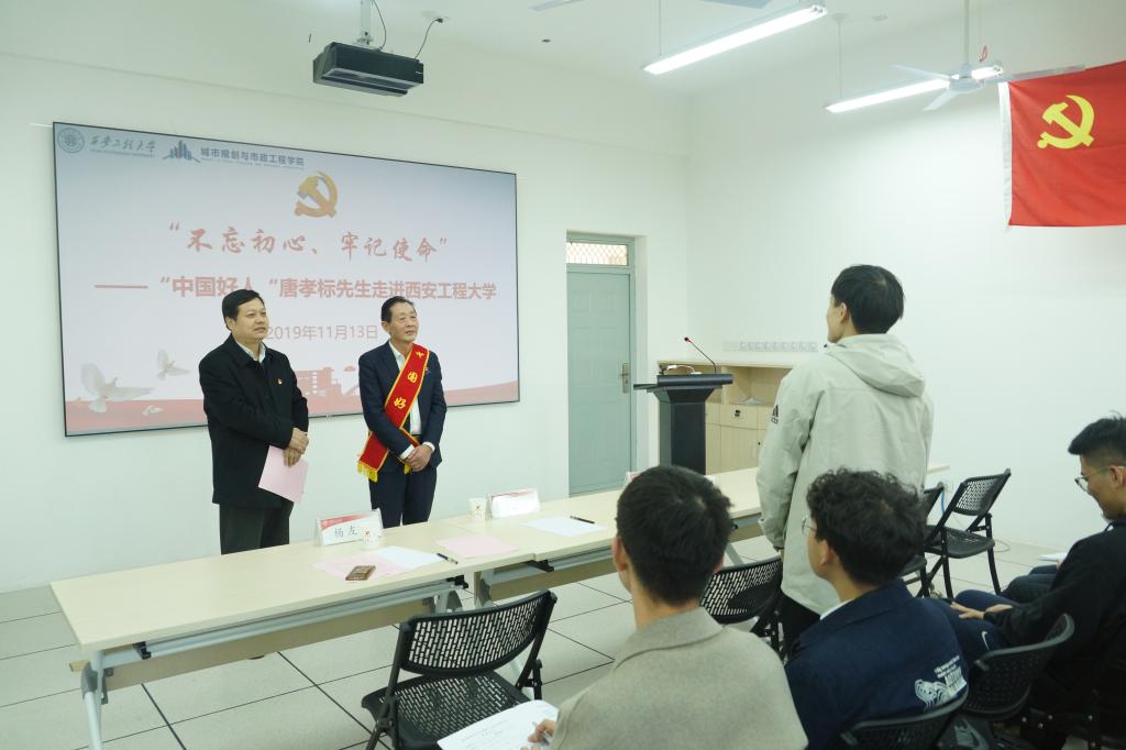 最后,杨友谊指出作为一名老党员,唐孝标先生“听党话,跟党走!”的坚定信念以及爱国敬业、乐于助人的情怀值得所有人学习。作为当代大学生也理应继承和发展革命传统和爱国情怀,用实际行动回馈社会。