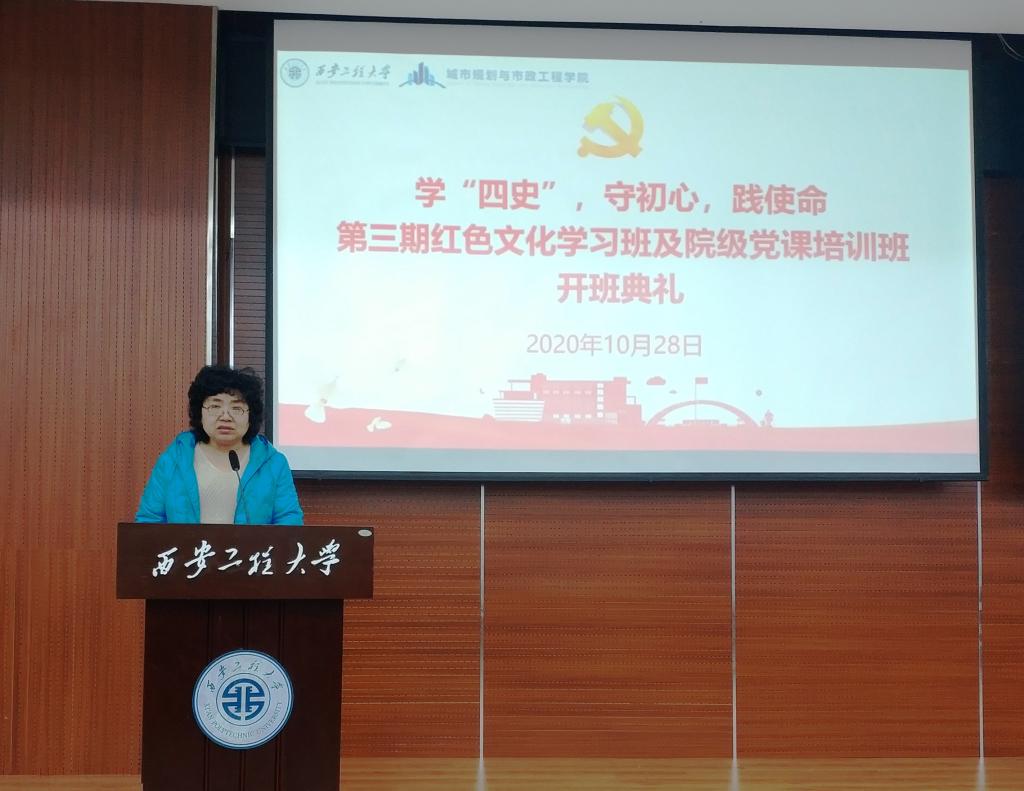 2020年10月28日,beat365vip官网登录入口在临潼校区图书馆二楼报告厅举行“学‘四史’,守初心,践使命”红色文化学习班及院级党课培训班开班典礼。beat365vip官网登录入口党委书记杨友谊,学生工作办公室主任凌旭,辅导员陆瑞成、王春元以及培训班251名学员参加了本次典礼。开班典礼由学院党委副书记袁群主持。