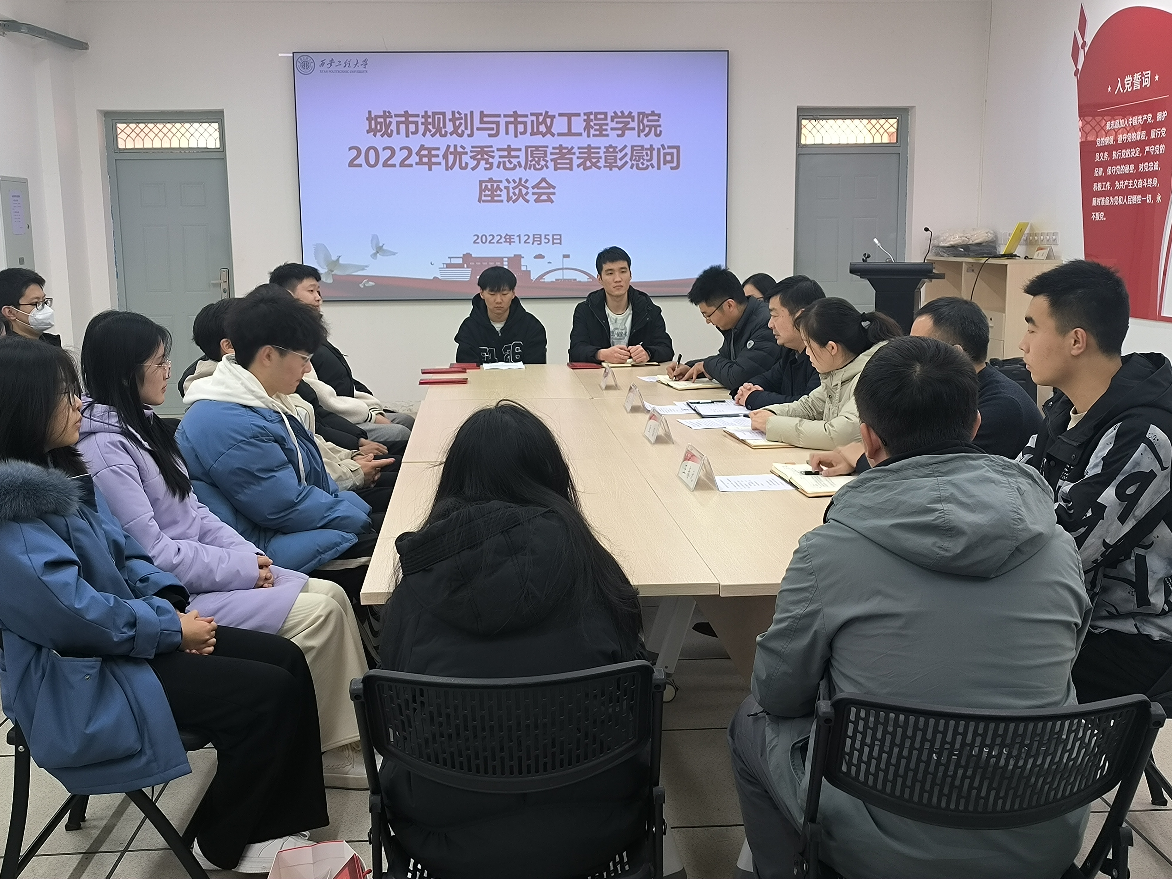 2022年12月5日是第37个国际志愿者日,为表彰优秀,激励先进,弘扬志愿者服务精神,beat365vip官网登录入口在笃行楼322会议室开展2022年优秀志愿者表彰慰问座谈会。院党委书记王劲伟、党委副书记鱼园、辅导员王春元以及学院各学生组织代表、志愿者代表参加座谈会。会议由学院团总支书记陆瑞成主持。
