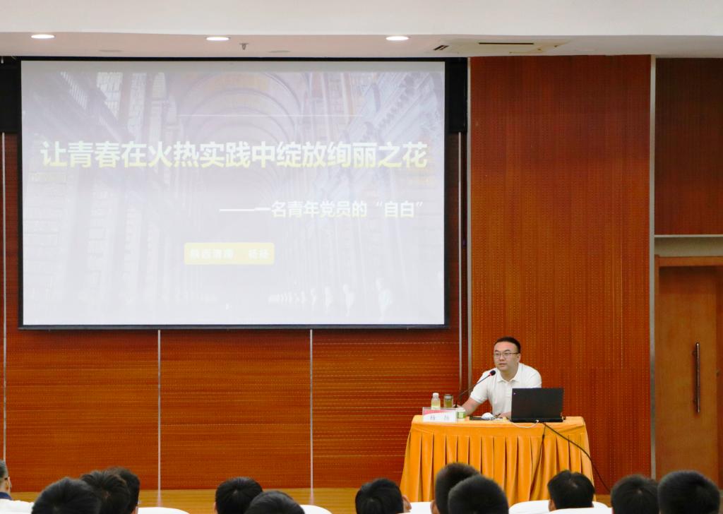 学习班上,杨扬以“让青春在火热实践中绽放绚丽之花——一名青年党员的‘自白’”为题,向与会老师和同学们讲授了一堂生动的党课。他结合自己的工作事例从基层责任重大、基层压力大、基层使命光荣三个方面对基层工作的特点做了生动的解读,强调“基层工作大有可为,大有作为”。在分享自己如何应对基层工作的诸多挑战时,杨扬通过“我和梁大爷的故事”等令人感动的工作事例,讲述了基层工作者如何用马克思主义的方法论为民办实事、为民解忧,如何用担当与作为阐释“让老百姓幸福就是党的事业”。在讲到乡村振兴时,杨扬讲到除了发展当地特色产业外,崇凝镇党委还积极挖掘当地红色文化内涵,以文化人,以“渭华起义”等当地厚重的红色文化凝聚人心,共建美丽乡村。