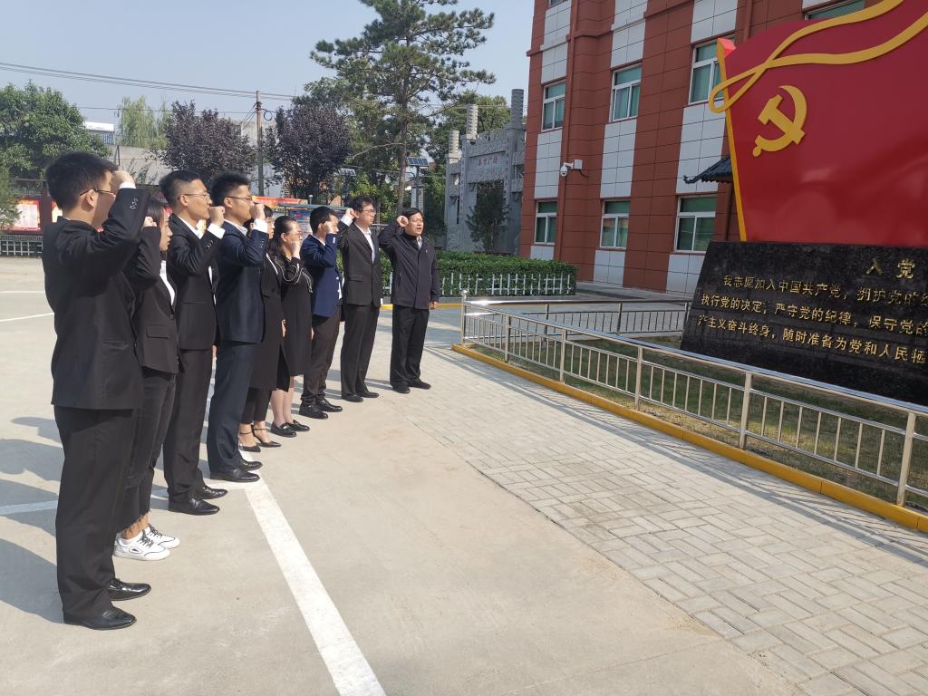 王泰吉革命烈士墓园在临潼区尖角村泰吉广场的北边,苍松翠柏掩映下的墓园显得格外庄严肃穆。在王泰吉烈士纪念亭前,杨友谊向大家介绍了王泰吉生平事迹。随后,全体党员肃穆敬礼,缅怀先烈。在泰吉广场的党旗前,到场的全体党员在杨友谊书记的领誓下重温了入党誓词。