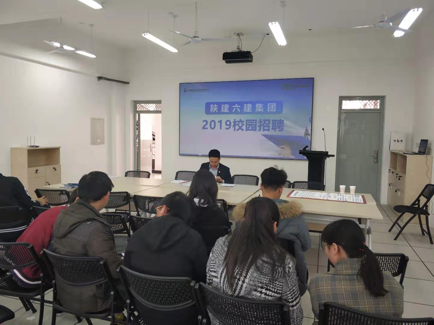 2019年3月6日上午10点整,陕西建工第六建设集团有限公司专场招聘会在beat365官网322会议室成功举办。面向beat365官网给排水,建环,土木工程专业同学,共计28人参加专场招聘会。