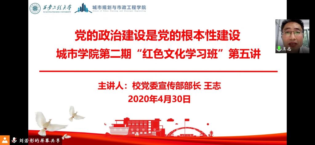 2020年4月30日晚,beat365vip官网登录入口邀请校党委委员、宣传部部长王志给“红色文化学习班”学员做“党的政治建设是党的根本性建设”专题辅导。