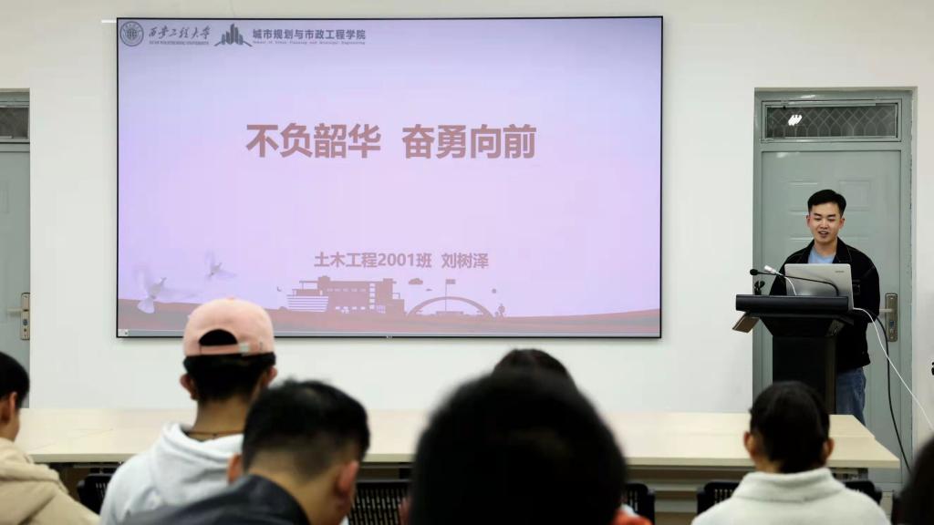 团课第九讲,学院“初心”党史宣讲团成员刘树泽以《不负韶华,奋勇向前》为主题,解读了清华贫困生在“树洞”发表的一篇文章,他讲到,我们所得到的一切,都应该有相应的品德去支撑。希望全体学员树立正确榜样,做到不甘示弱、敢于吃苦和知恩图报。最后,他号召全体学员要以微光照亮微光,永葆感恩之心。