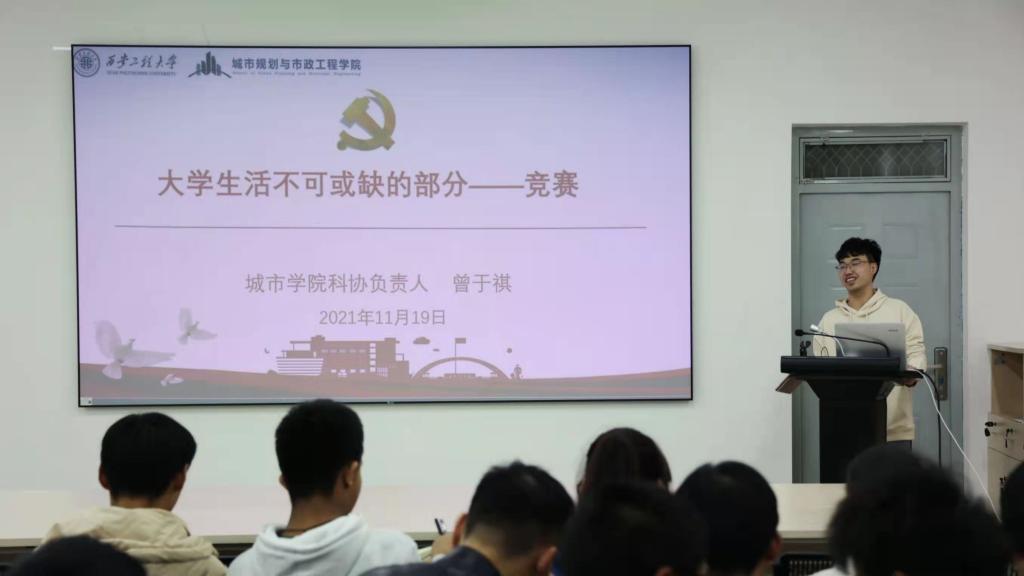 第八讲,学生科协部门负责人曾于祺以《科创竞赛解析》为主题,介绍了大学科创竞赛的基本情况,并从四个方面分析了竞赛与学习的关系:竞赛源于学习,竞赛服务于学习,学习可以帮助竞赛,竞赛可以促进学习。他从赛前、赛中和赛后三个方面详细介绍了应做的准备和需要注意的问题。他号召同学们要积极参加竞赛,不断提升自身的创新能力。