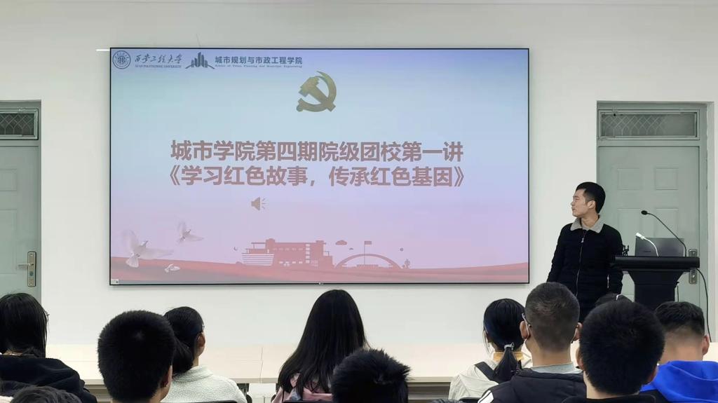 第二讲,学院学生组织主席团成员师琛以《学习红色故事,传承红色基因》为主题,从五四运动出发,带领全体学员学习了我国社会主义建设的道路。他讲到,作为新时代的青年,正处于学本领、长才干的关键时期,是国家发展的见证者,也要做民族复兴的建设者。学员们应自觉树立远大理想,展现青年的责任与担当,认真学习科学知识,脚踏实地,务实笃行,争取早日成长为堪当大任的国家栋梁。