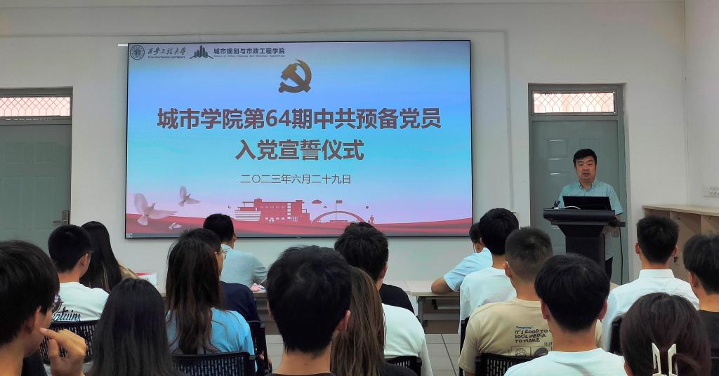 最后,王劲伟同志作了讲话。首先,他代表学院党委对新党员表示祝贺,并同新党员们一起回顾了党的百年奋斗历程和丰功伟绩。之后,他对新党员提出了三点要求:一是不仅要在组织形式上入党,更要在思想上入党。要自觉接受党组织的教育、管理和监督,不断加强政治理论学习和党性修养,自觉改造世界观,始终保持共产党人的蓬勃朝气、昂扬锐气和浩然正气。二是要强化责任意识,履行党员义务。要以党员的标准严格要求自己,将先进性体现在平时的学习、工作以及日常生活中,认认真真、踏踏实实的完成好每个环节的学习任务,在树立优良学风、倡导文明举止中切实发挥骨干作用和带头作用,不断扩大党的工作覆盖面,增强党的凝聚力和影响力,为党的事业,为学校的改革发展作出自己的贡献。三是要积极参加深入学习贯彻习近平新时代中国特色社会主义思想主题教育。要深刻领悟“两个确立”的决定性意义,增强“四个意识”、坚定“四个自信”、做到“两个维护”,模范履行党章规定的义务,强化党员意识,努力发挥模范带头作用,树立党员的良好形象,以自己的行动为党旗增辉。