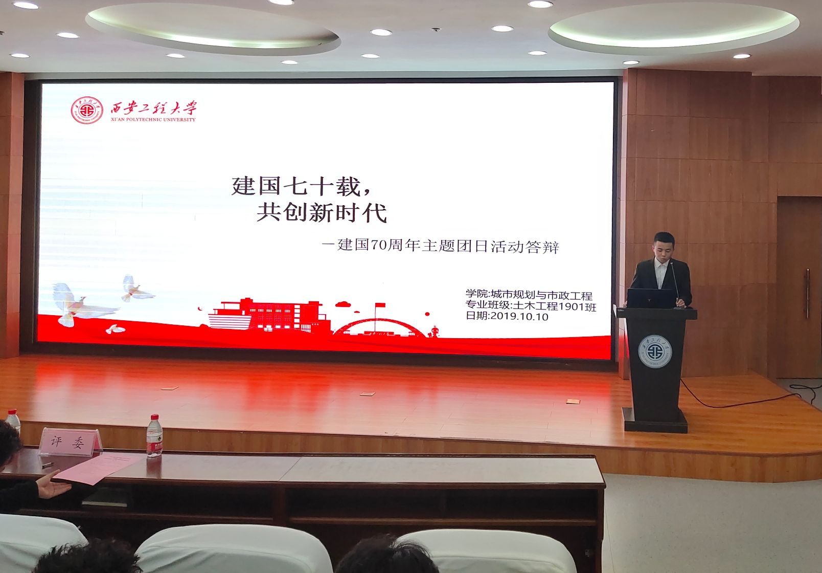 为热烈庆祝中华人民共和国成立70周年,切实感受70年来中国的发展巨变和人民的奋斗路程,弘扬爱国主义精神,更好的开展“两学一做”学习教育工作,2019年10月15日19时,beat365vip官网登录入口团总支在beat365vip官网登录入口临潼校区图书馆一楼报告厅举办“温国史•传国情”庆祝新中国成立70周年主题团日活动答辩决赛。beat365vip官网登录入口团总支书记、学生工作办公室主任凌旭出席了本次答辩会,团总支副书记刘若彤、学生会主席严梦雨、大学生科技协会主席张亚瞳、大自委副秘书长王乾担任本次答辩会的评委。