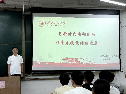 学院研究生会主席团成员李喜龙讲授了主题为《青春正当时 奋斗同路人》的团课。他通过讲述青春榜样的故事,激发大家的热情,并强调青春是奋斗的最佳时期,鼓励大家勇敢追逐梦想。在互动环节,团干部们分享了自己的奋斗目标和计划,鼓励青年同学们:青春充满无限可能,大家作为同路人,应在奋斗中绽放光彩,携手共进,为实现个人价值和国家的繁荣贡献力量,让青春在奋斗中熠熠生辉。