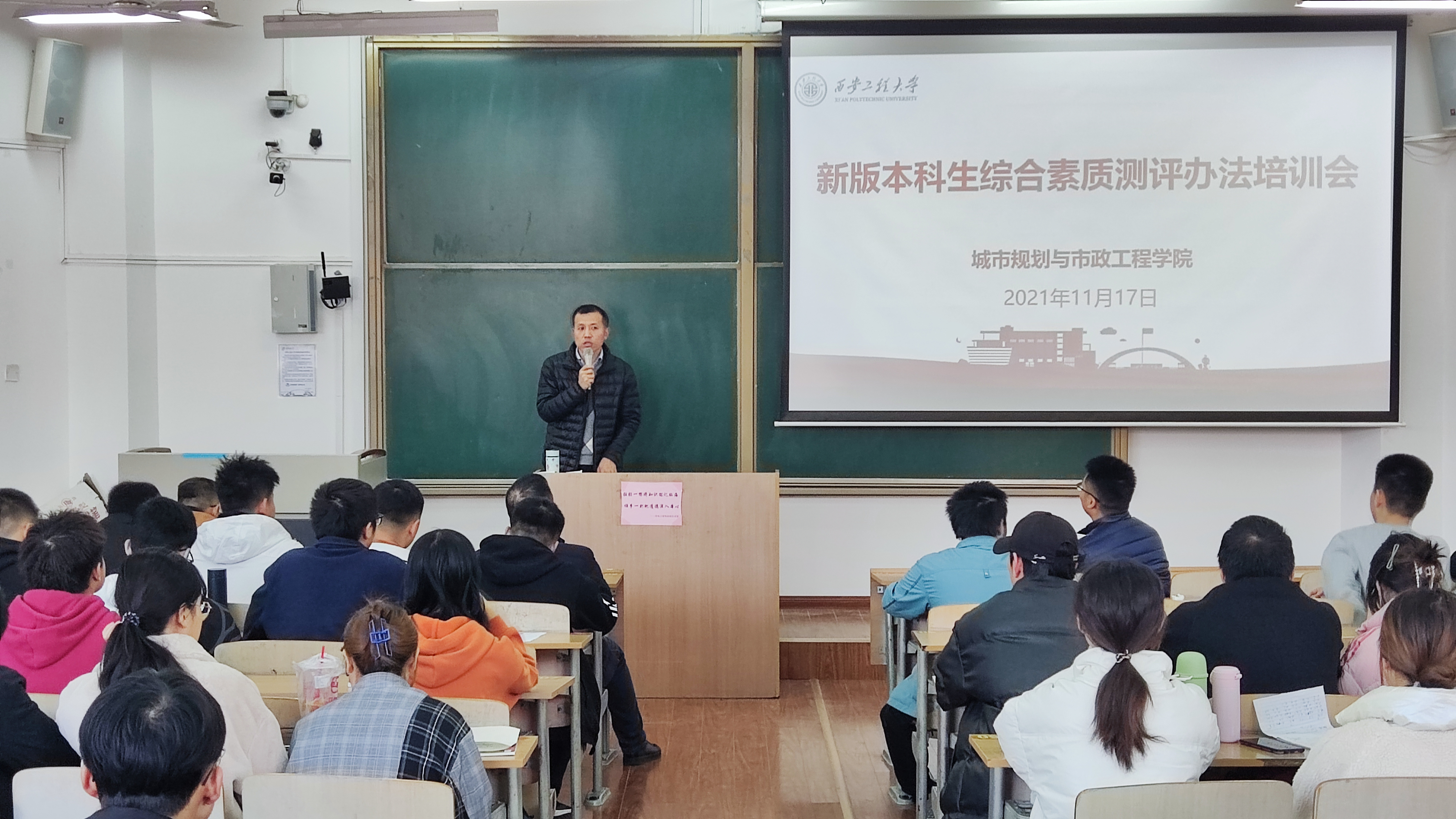 11月17日中午,beat365vip官网登录入口在临潼校区B-135教室举办新版本科生综合素质测评办法培训会,学生工作处学生资助中心主任代锴、学院学工办主任凌旭、辅导员张苹、陆瑞成、王春元,以及19、20、21级各班班长、团支书和学习委员参会。会议由凌旭主持。