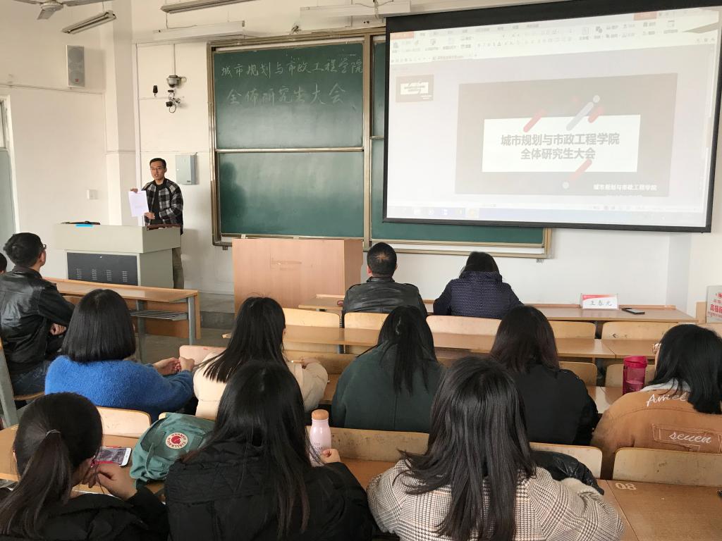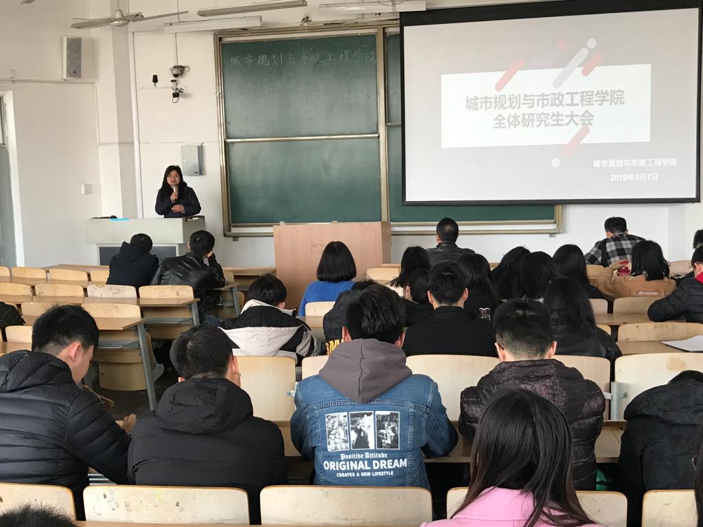 2019年3月7日中午12:10,beat365vip官网登录入口在临潼校区B-235召开全体研究生大会。参加会议的有学院党委副书记袁群、学生工作办公室主任凌旭、辅导员王春元及学院全体研究生。会议由研究生会主席李若溶主持。