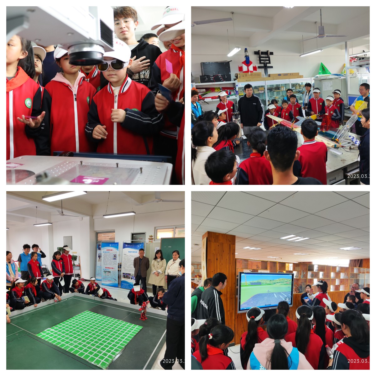 午后,大手拉小手一起漫步子衿长廊闻着紫藤花香,走向樱花大道,闻闻连翘、看看紫荆、嗅嗅玉兰,小朋友与大朋友满脸洋溢着欢笑。本想在图书馆休息区小憩一会,但似乎那一排排琳琅满目的图书更具诱惑力,对知识的好奇与渴望点燃了小学生们的热情,他们用稚嫩的双手爱抚册册厚重的书脊。紧接着,工程训练中心的数控机床、3D打印、舞蹈机器人、大型航模、虚拟机实操,仿如打开了他们另一扇知识的大门,那一双双纯真灵动的眼睛,仿佛要把所有见闻装进脑海里,离开工训中心,嘴里还在叽叽喳喳交流个不停。