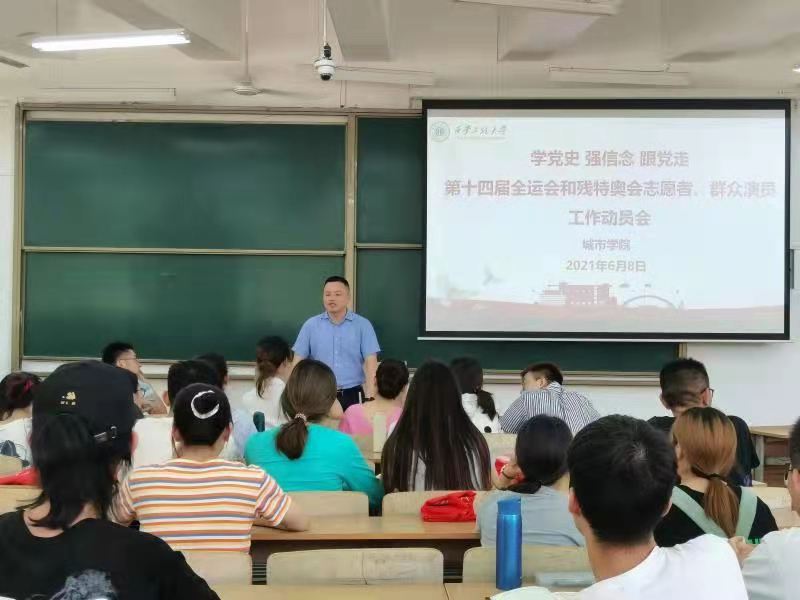 beat365vip官网登录入口于6月8日中午在临潼校区B137教室召开第十四届全运会和残特奥会志愿者、群众演员工作动员会。学工办主任,团总支书记凌旭、辅导员陆瑞成以及学院全部志愿者,群众演员参加了大会。