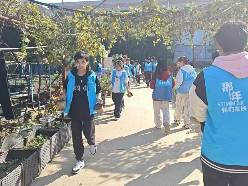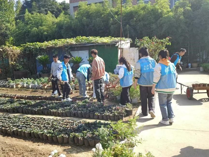 活动现场,“护花使者”搭子团成员们激情澎湃,精神饱满。他们小心翼翼地搬运着一盆盆珍贵的花卉和绿植,呵护着一个个绿色的生命。每个人都有明确的分工,有的人负责将植物搬运到新的场地,有的人则负责在新的场地进行摆放,大家分工明确,配合默契。在活动过程中,大家看到不认识的植物也会向园丁老师询问,老师耐心的解答着同学们的疑惑,就这样,在不知不觉中,植物已全部搬运完毕,同学们也在这次活动中收获颇丰。