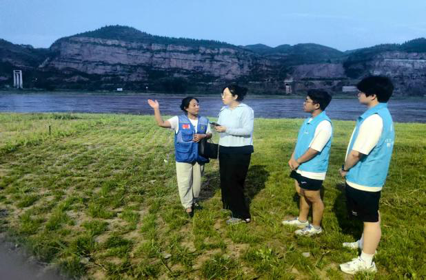 在此次活动过程中,师生们偶遇了同样在吴堡县开展志愿服务活动的蓝天救援队成员。双方志愿者队伍就志愿服务的心得体会、组织经验以及黄河生态保护等共同关心的话题进行了亲切友好的交流。这次交流,不仅分享了环境保护的志愿服务经验,更传递了“奉献、友爱、互助、进步”志愿精神,展现了社会各界共同守护母亲河的决心。