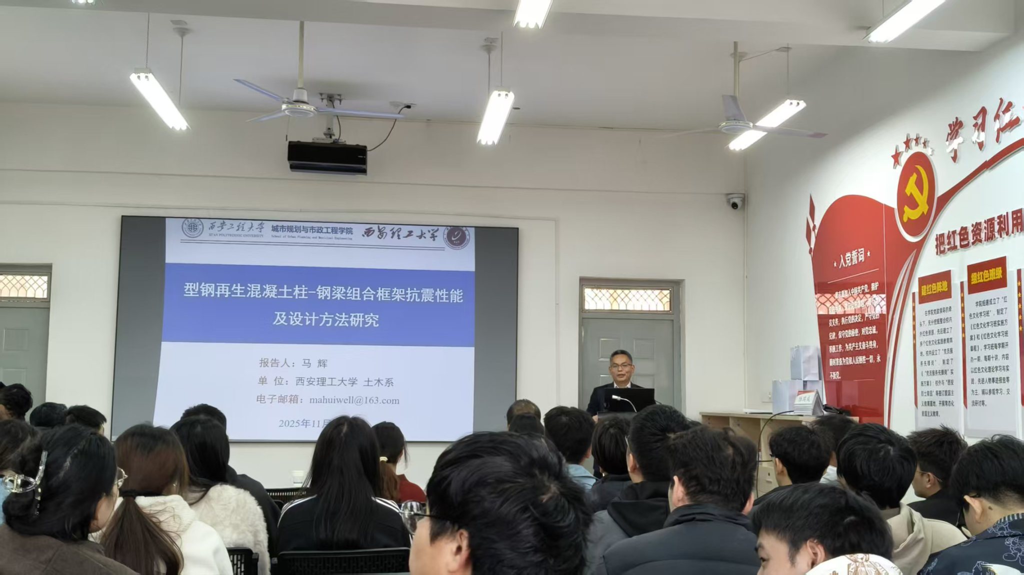 11月13日下午,主题为“型钢再生混凝土柱-钢梁组合框架抗震性能及设计方法研究”的学术报告在beat365vip官网登录入口322会议室顺利举办。本次报告邀请西安理工大学土木系马辉老师担任主讲人,全体研一学生到场聆听。