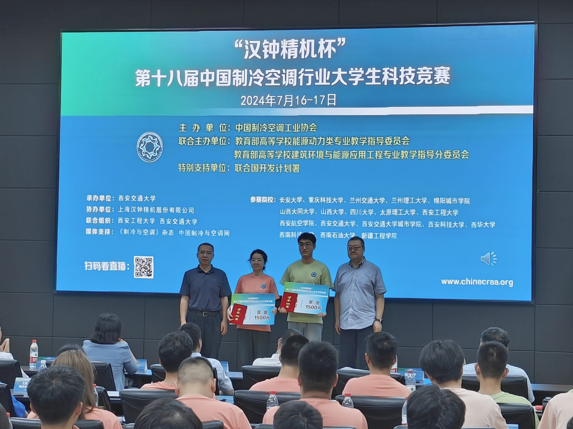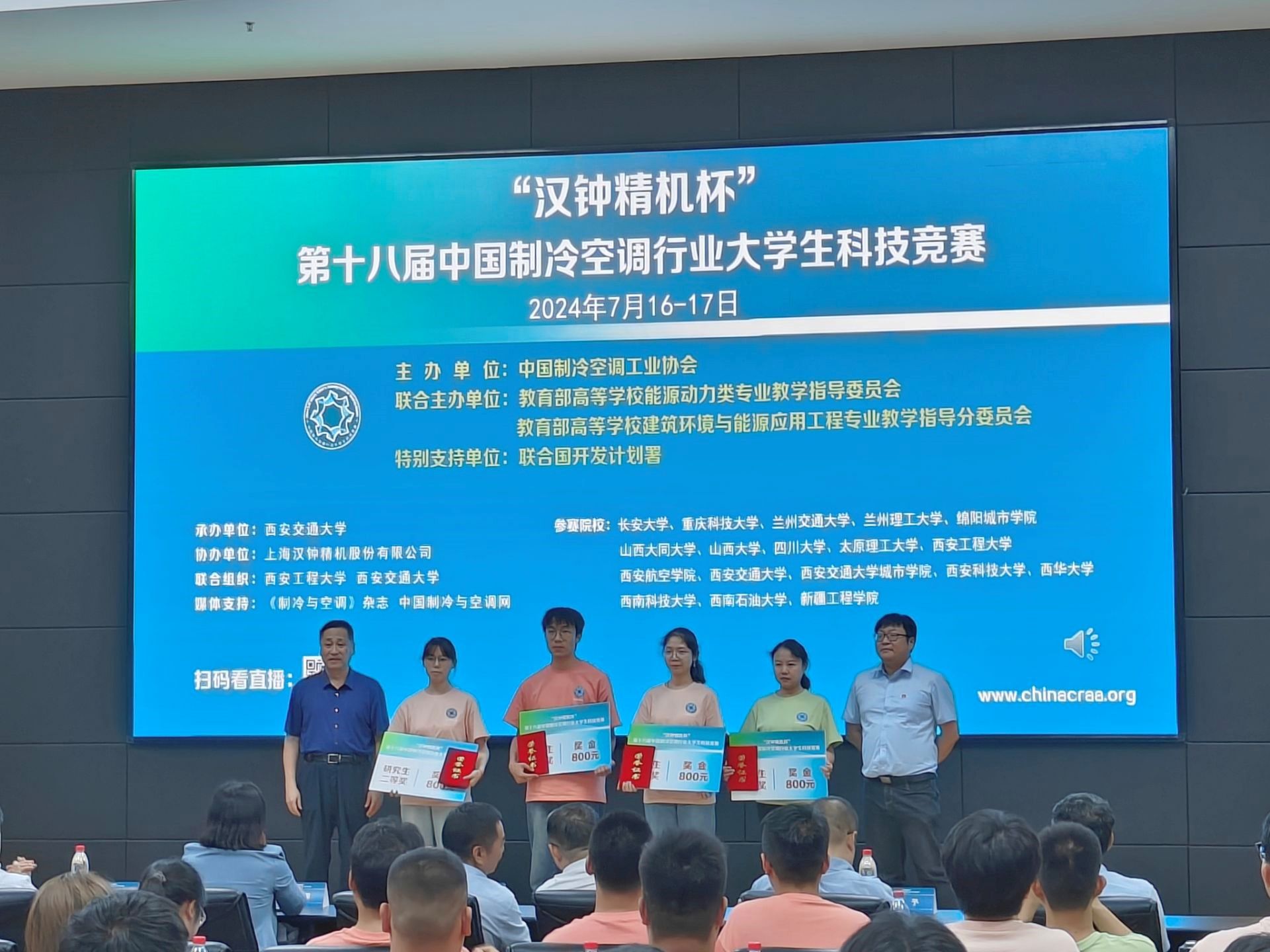 2024年7月16日至17日,由中国制冷空调工业协会主办,教育部高等学校能源动力类专业教学指导委员会和教育部高等学校建筑环境与能源应用工程专业教学指导分委员会联合主办,联合国开发计划署特别支持,西安交通大学承办,上海汉钟精机股份有限公司冠名协办的“汉钟精机杯”第十八届中国制冷空调行业大学生科技竞赛决赛在西安交通大学兴庆校区隆重举办,本次大赛主题为“新型工业化的制冷空调技术”。参与本次竞赛的院校有beat365vip官网登录入口、兰州交通大学、长安大学、山西大学、西安科技大学等18所高校。