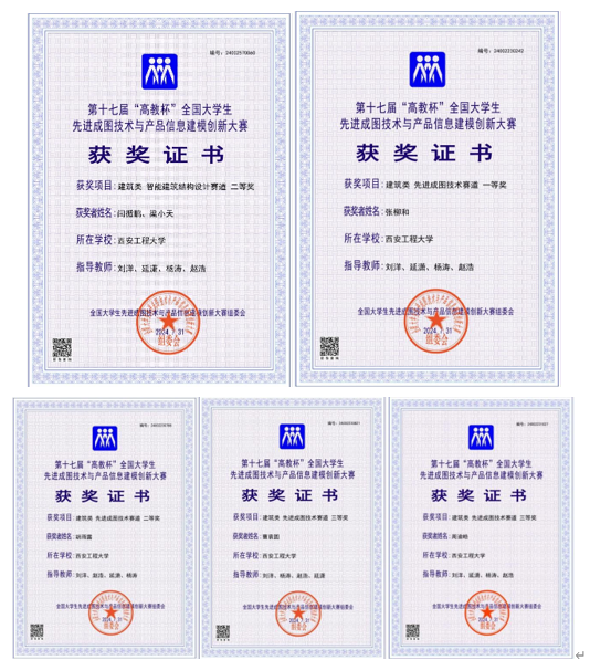 本次大赛分为省内选拔赛及全国总决赛,经过激烈角逐,全国共有872所高校、17692名选手晋级全国总决赛,规模再创新高。beat365官网指导老师刘洋、延潇、杨涛、赵浩带领beat365官网21级学生闫循鹏、梁小天,22级学生周渝皓、张柳和、曹袁圆,23级学生胡雨露,经过激烈角逐,荣获获得个人一等奖1项,二等奖1项,三等奖2项,智能建筑结构设计赛道二等奖1项,建筑类团体二等奖1项。