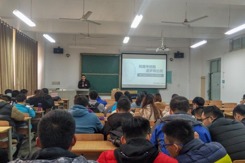 beat365vip官网登录入口第一届“丝路新青年”学风建设“风雨考研路,逐梦再出发”主题宣讲会于2018年11月27日、30日在A栋教学楼122室召开。“丝路新青年”学风建设宣讲团成员艾煜智、贺泽坤、16级给排水科学与工程专业、建筑环境与能源应用工程专业全体同学及部分17、18级同学参加了此次活动。