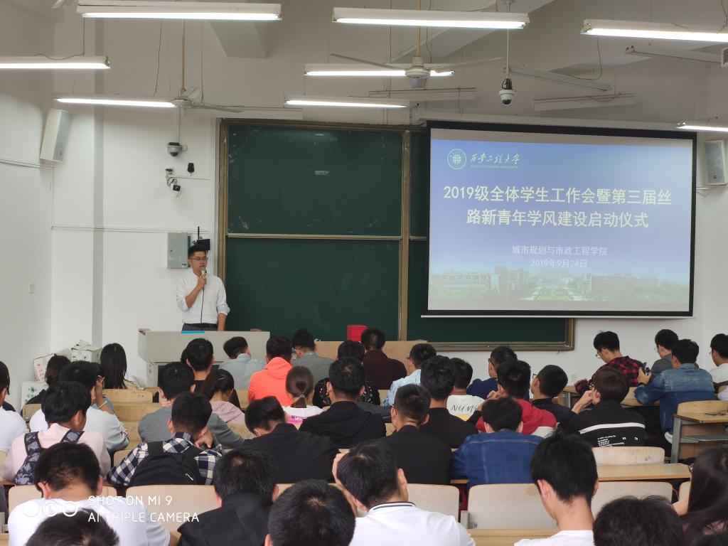 9月24日中午,beat365vip官网登录入口于临潼校区B-135召开19级全体学生工作会暨第三届丝路新青年学风建设启动仪式。参加本次会议的有全体辅导员、各学生组织负责人、各班班主任助理及19级全体学生。本次会议由陆瑞成主持。