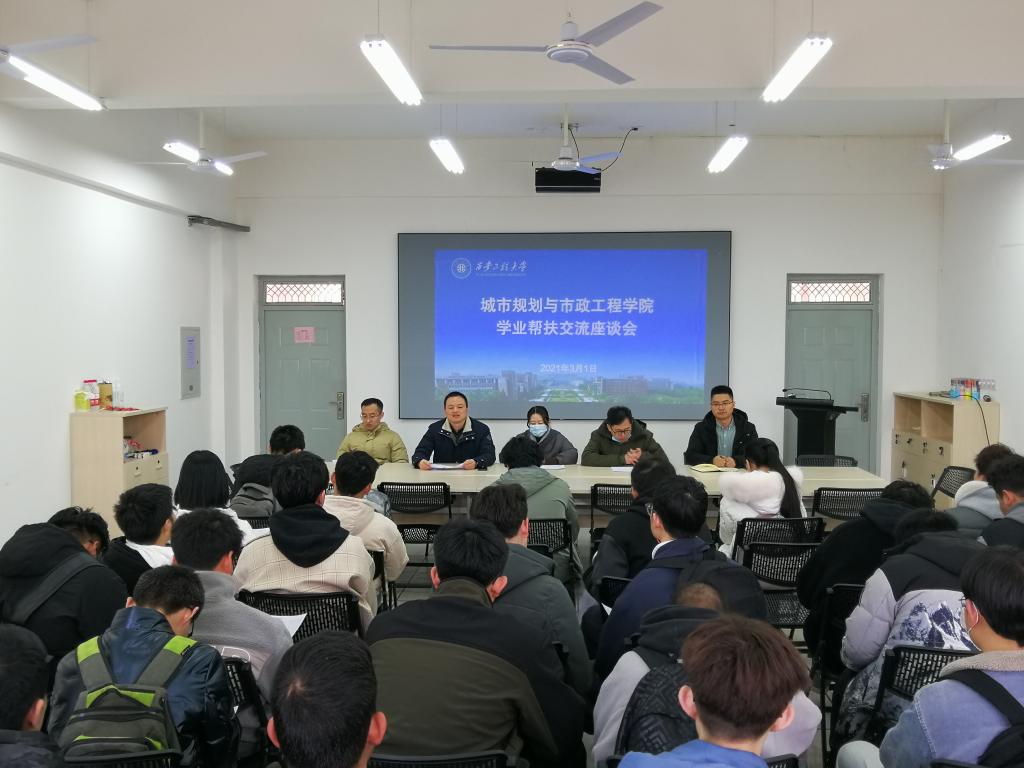 3月1日中午,beat365vip官网登录入口在笃行楼322会议室举办学业帮扶交流座谈会。教学副院长房平、学工办主任凌旭、教务员、各年级辅导员、学生代表、学籍异动学生等50余人参加会议。